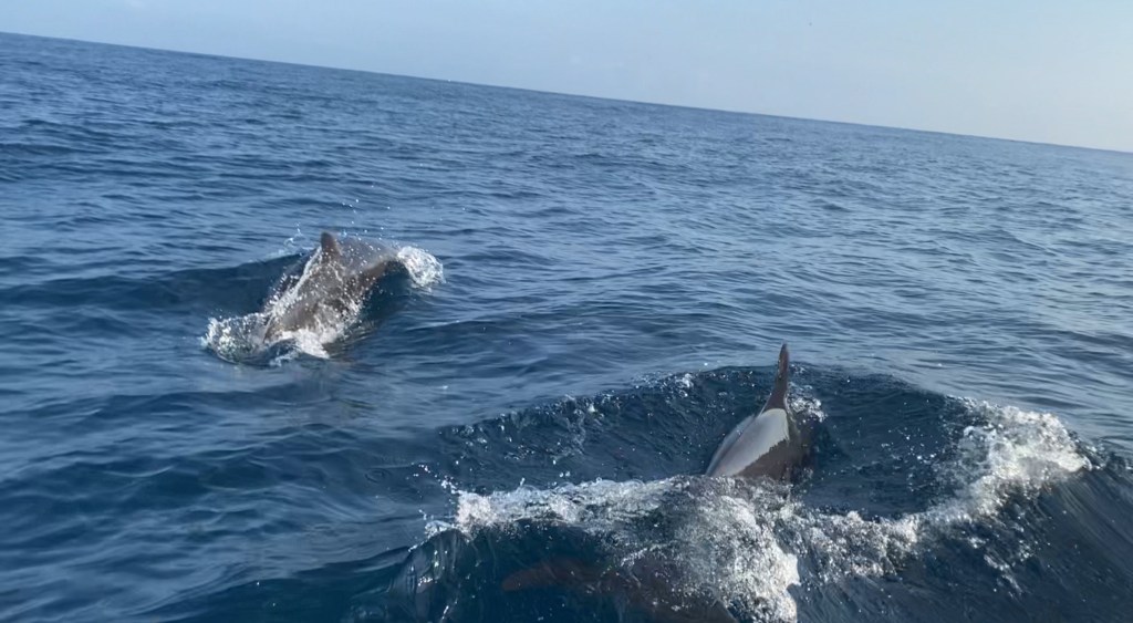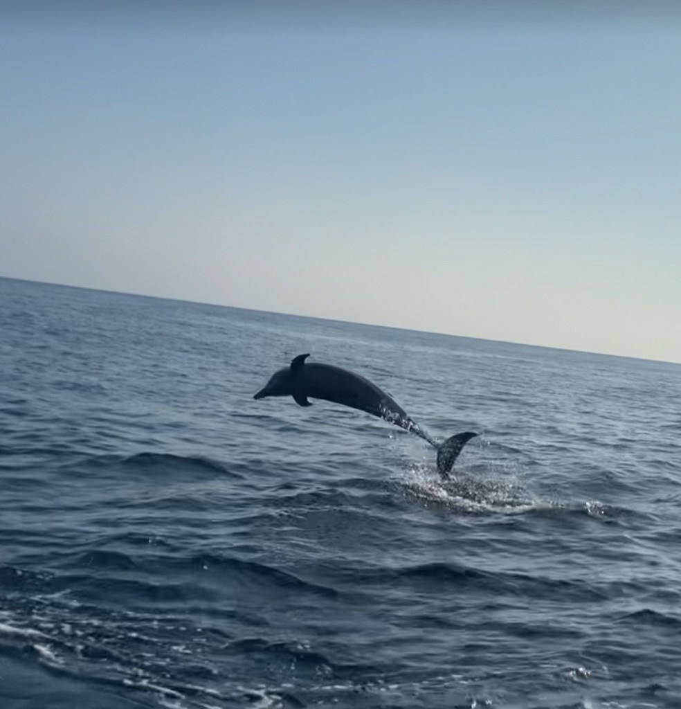 One of the MANY highlights of the day was our encounter with a pod of about 250 dolphins (many new baby dolphins with their mothers). They approached our ship and our amazing captain circled around for us to greet each other…one jumped about 10 feet out of the water to put on a show!