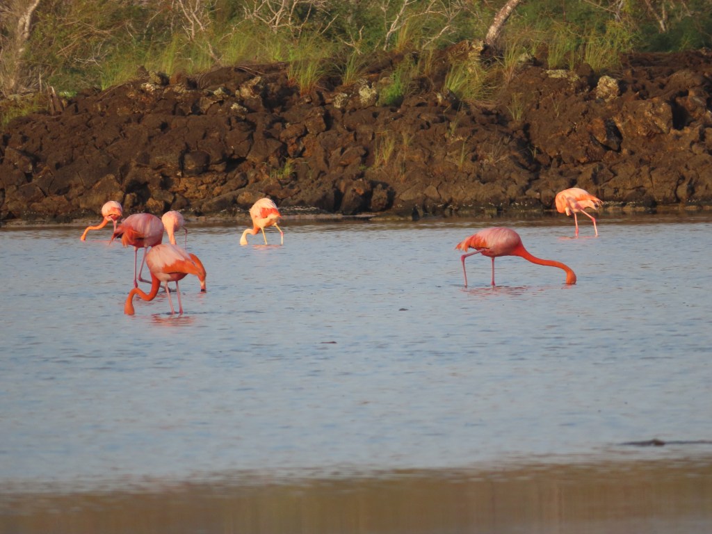 We awoke at Floreana Island, the mystery island. We went for an early walk, and it was so worth going there early! We saw a couple of blue-footed boobies performing their famous mating dance, while several Galapagos sea lions were resting at the green sandy beach. We also stumbled upon a large flock of flamingos! What a beautiful sight it was!