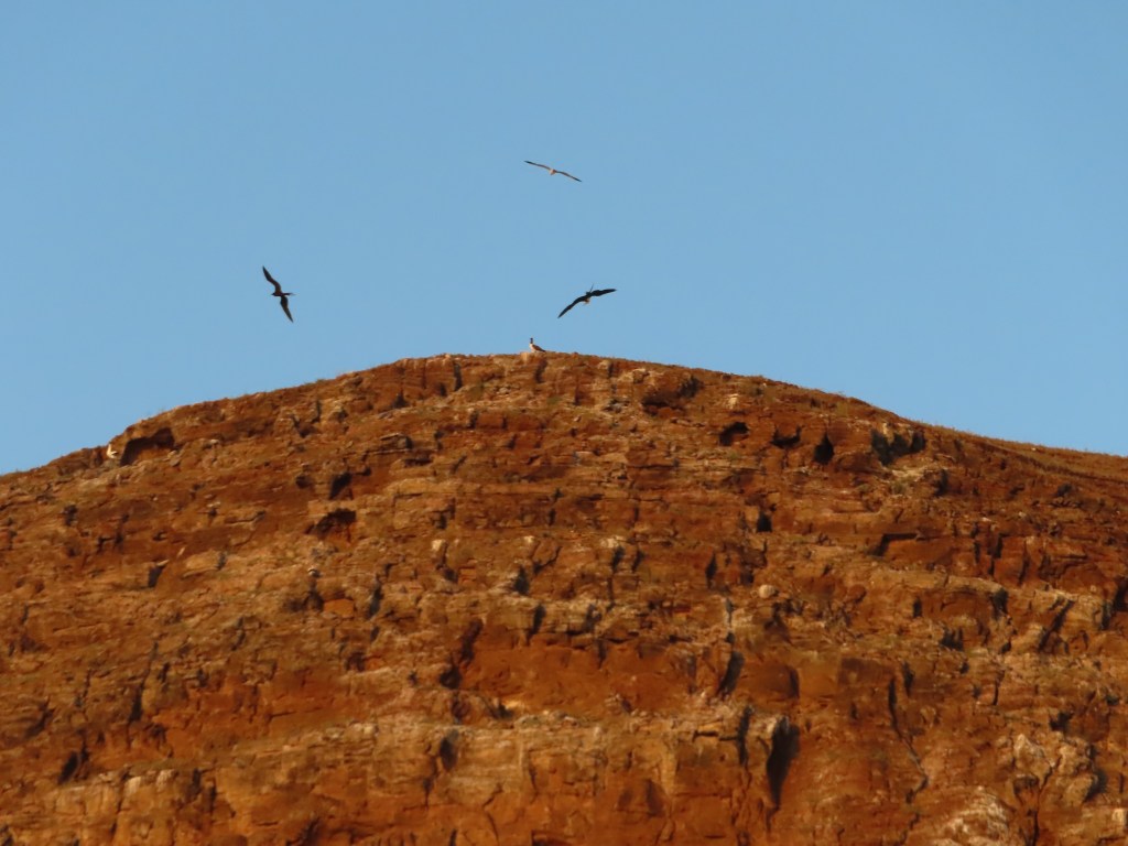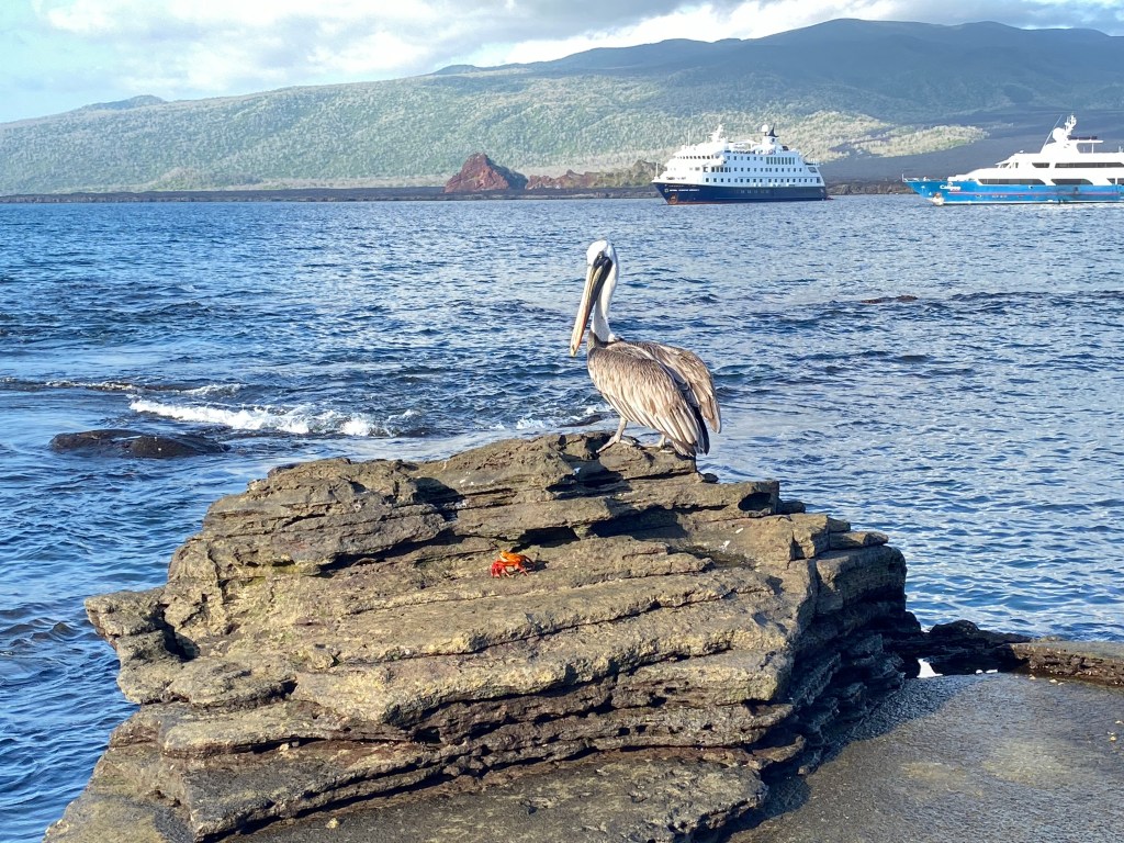 We arrived to San Cristobal via Guyaquil, where we had a nice welcome to Ecuador at the Oro Verde hotel and the very friendly staff and crew there and Lindblad. Once we were on the ship, there was a sunset welcome reception and a tour around kicker rock accompanied by frigate birds in flight!