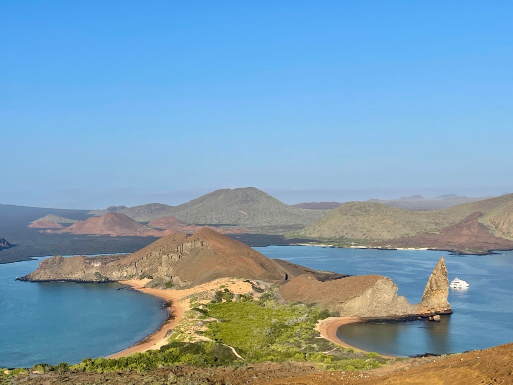 Today I started with a small group for an exploration of Bartolome Island for iconic Galápagos views, and then we all all met up for excursions around Sombrero Chino “Chinese Hat,” later in the day. We had special encounters throughout the day, spotting the Galapagos penguin, sea lions, and blue-footed boobies. We also saw a number of sea creatures during our snorkeling activities.