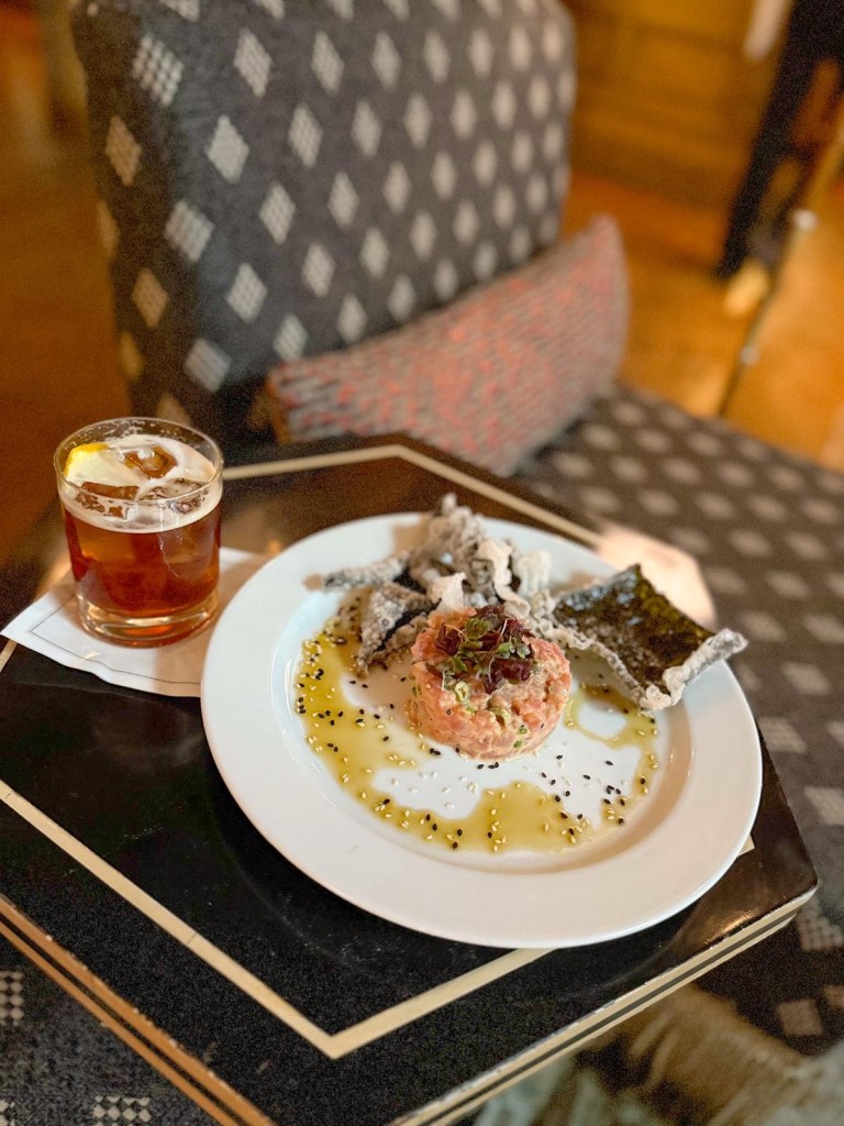 Since the bartenders at Bowie House take such pride in their craft, making the drinks as much of a masterpiece as the art on the walls, I just gave the bartender poetic license to make me a mezcal smokey-sweet drink and she made one up for me on the spot….and I loved it.